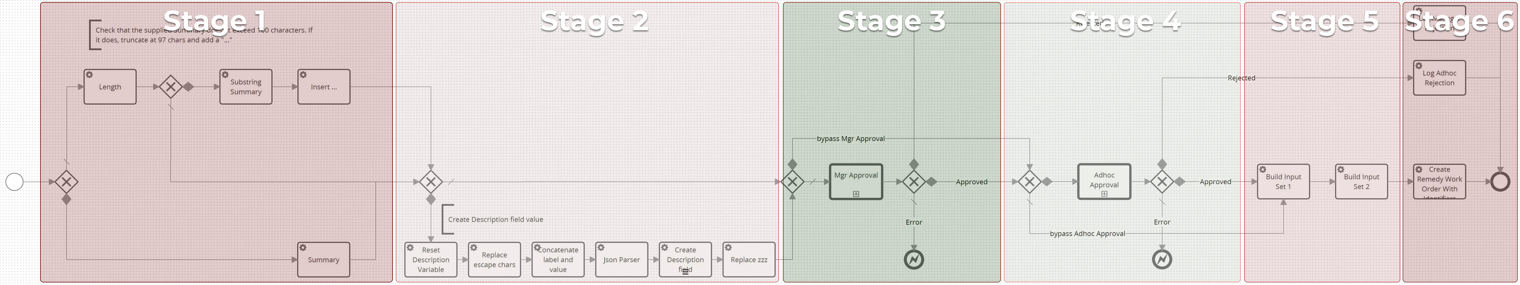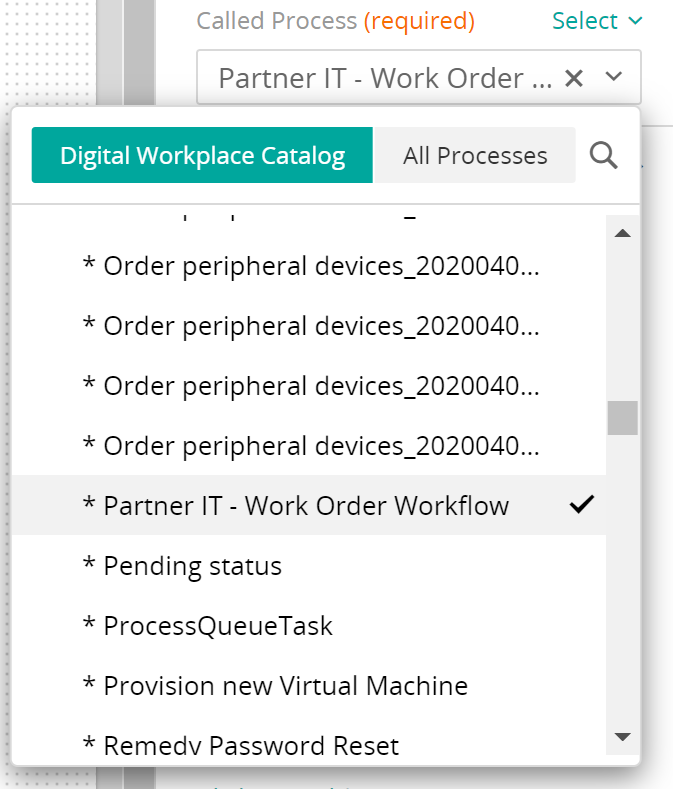 The Partner IT Work Order Workflow provides an easy, consistent method for creating work order workflows in DWPA. The workflow is called through a Call Activity step, in the same fashion as the approval process, with the 7 required fields being set through values found in the Service Broker Context variable and the name of a Work Order Template.